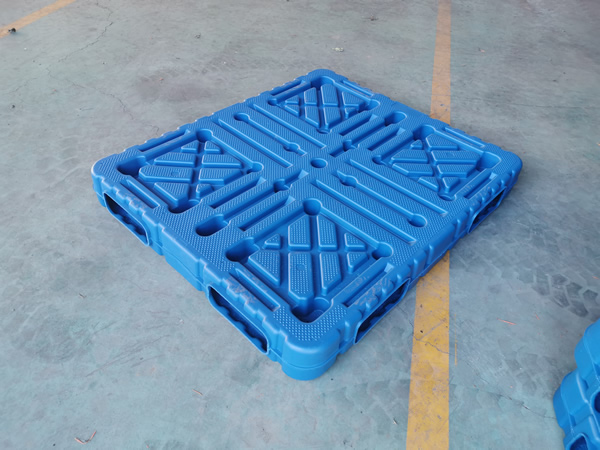 中空吹塑塑料托盤的生產與一般的中空制品吹塑成型方法相類似,因其產品較大,且為雙面型,需要較大的擠出機、合模機及模具等。目前國內中空成型機制造廠家已經研發出專業高速生產高強度吹塑托盤的超大型中空成型機,采用HDPE(低壓高密度聚乙烯)高強度塑料生產,成型速度較快,產品質量較好,具有高強度、壽命長的特點,一般吹塑托盤的使用壽命可以達到5~10年,同時可以在-40~70℃的環境下穩定工作。其產品的動載可以達到3t以上,抗彎強度均是較高的水平。是高強度使用環境的首選托盤,目前其價格比注塑托盤偏高一些,但其使用壽命特別長,所以它的性價比是所有托盤中最高的。吹塑托盤隨著成型設備價格的大幅度降低,將會在近年內獲得較快的發展。將對于節約有限的石油資源與物流成本有極大的好處。